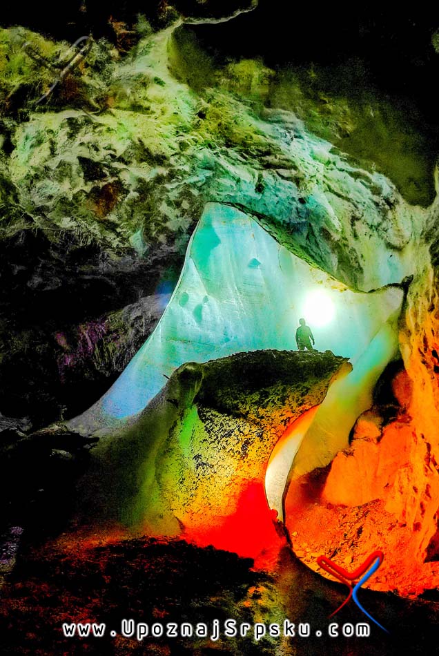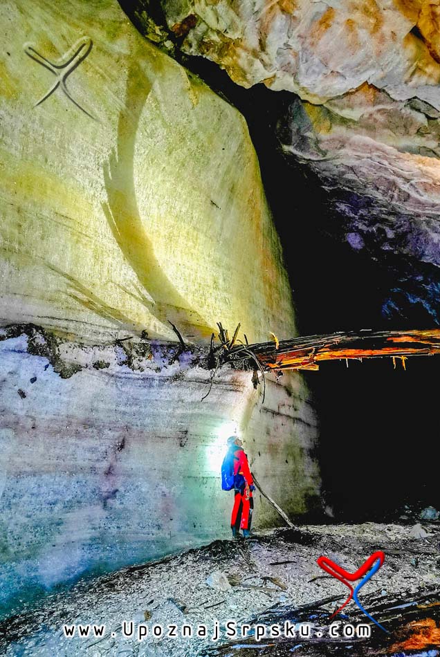 Дебљина ледених наслага у улазној дворани варира: у најтањем дијелу износи око 4 метра, а у најдебљем до 16 метара, док је пречник залеђене површине око 60 метара. Врећасти облик дворане, у комбинацији са релативно уским улазним отвором који готово онемогућава продор природне свјетлости, ствара услове за дуготрајно задржавање леда у јами.